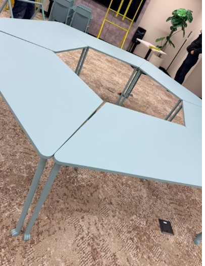 テーブルを自由に組み合わせることで、人数や用途に応じたレイアウトが可能になります。