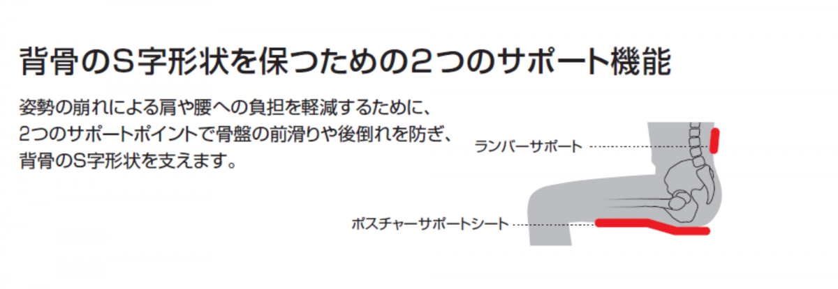 背骨のS字カーブを維持する設計により、無理なく正しい姿勢を保つことが可能です。